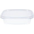 Transparent delicatessen salad container with a sealed hinged lid. Dimensions: 185 x 162 x 48 mm, Volume: 75 cl.