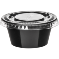 Small dressing cups 6 cl in black color that are perfect for those who need a cup for soy sauce or delicious dipping sauces.