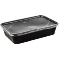 Black rectangular microforms of high quality. Suitable for both hot and cold food. Volume: 50 cl, Dimensions: 17.5 x 12 x 4 cm.