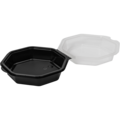 Black octagonal salad containers with transparent lids. Suitable for cold food such as salads and more.