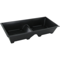 Black rectangular shapes with 2 compartments. Volume: 600 ml + 600 ml, Dimensions: 288 x 141 x 55 mm.