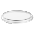 Round lid for a 1200 ml food container with a large tab for easy and convenient opening. The lid is transparent and has a frosted surface on the edge to prevent scratches when stacking the food containers for transport.