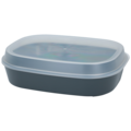 Rectangular food containers, 1100 ml, in gray. The food containers have a high-gloss surface on the inside to prevent food residues from sticking. They are easy to clean and dishwasher-safe.