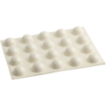 Dörrbuffert från Habo. Självhäftande buffert av vit plast. 20 st per ark. Storlek 17x17x6 mm/st.