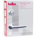 Exterior door set without lock case from Habo. Complete exterior door set with door handle and double-acting return spring. Perfect for sheds, holiday homes, garages, etc.
