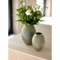 Vas River gray-blue from Morsø. A stylish porcelain vase decorated with a matte glaze and a beautiful spiral pattern. Place it alone as a decoration or together with a bouquet of flowers.