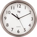 Wall clock 25 cm from Tiq. Sleek wall clock in brushed steel with a white dial. Quiet second hand powered by one alkaline battery. Perfect for use both in the workplace and at home.