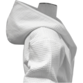 Följsam och nätt badrock med luva. BADROCK GAP HOOD VIT från Fritz Magnus har en omtyckt våffelkvalité och kommer med prydlig satinpasspoal. Rocken passar utmärkt spa-hotell som har utomhuspool.