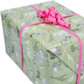 Gift wrapping paper Safari Green is a light green paper featuring savannah animals as its motif. Match it with a gift ribbon to create complete gift wrappings for children’s presents.