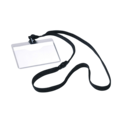 Hanging name tag in landscape format 6x9 cm with a narrow textile lanyard. Cut-out front for easy card replacement. Conference participants, visitors to companies, staff at trade shows, in stores, service professions, and salespeople - the list can go on where there is a need for name tags in various sizes, designs, and attachment options. This name tag in landscape format 60x90 mm comes complete with a 1 cm wide and 88 cm long textile lanyard with a safety lock. The cut-out front makes it easy to change the card relatively often. White labels on a strip are included. Labels on A4 sheets for printing in a printer can be ordered separately. Use the free program DURAPRINT® available at www.duraprint.se to create and print stylish name labels.
