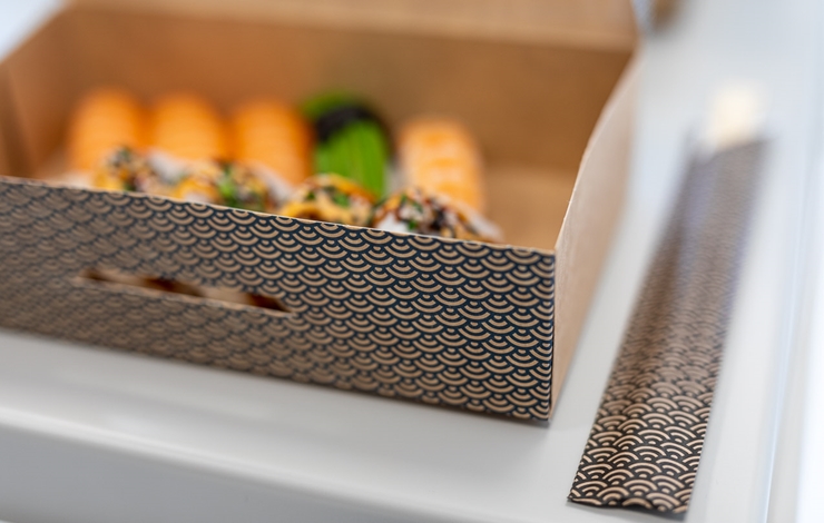 Nicely presented sushi in a more durable box. This is exactly what you get with these new and affordable boxes made in Scandinavia from Scandinavian raw materials. The boxes are decorated with a classic Japanese wave pattern. A perfect meeting between Scandinavian forest and Japanese food tradition.