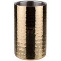 Bottle cooler Ø 12 cm in gold from APS with an elegant hammered look and double-walled construction for optimal insulation. Perfect for 0.7 - 1.5-liter bottles, this cooler keeps your drinks cool and adds a luxurious touch to your serving. Ideal for restaurants and bars looking to create an exclusive atmosphere. Elevate your drink service – order your bottle cooler today!