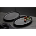 Fried plate Forno 28x20 2-pack from Morsø. A stylish oval plate with a higher edge on one side, allowing sauces or meat juices to collect and stay on the plate.
