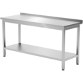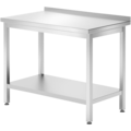 Workbench with splash guard and shelf from Hendi. The bench is made of stainless steel and is suitable for use in professional kitchens.