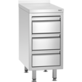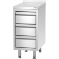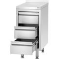 Drawer cabinet with 3 drawers and raised edge from Bartscher. Made of stainless steel with drawers in the standard size 1/1 GN. Practical and compact drawer cabinet for those who need additional storage. Suitable for professional kitchens, bars, and more.