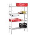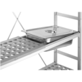 Shelf System Kit 4, B1070 from Bartscher with a versatile design is excellent for wet rooms, large kitchens, cold storage rooms, and freezer rooms, among others. A very practical advantage of the shelf is that you can use GN containers instead of shelves where desired.