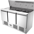The Saladette 1365T3 from Bartscher is delivered fully assembled and features a hinged door for convenient handling. This premium saladette made of chrome-nickel steel, with a generous work surface and high capacity, is optimal for use in restaurants.