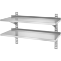 Double shelves measuring 100x40x60 cm from Hendi. The shelves are made of stainless steel and are suitable for a wall in a professional kitchen.