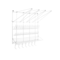 Stainless steel tool shelf from Hendi. The shelf has 4 tracks for hanging piping bags. It has 31 supports for storing nozzles, 7 hooks for hanging tools, and a small rack for small accessories.
