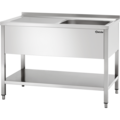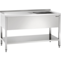 Robust sink 700 in stainless steel from Bartscher. Equipped with 1 or 2 sinks, a spacious under-shelf, and adjustable feet. A perfect solution for the professional kitchen or other businesses.