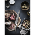 A carving knife resembles a chefs knife in design. The difference is that it has a longer and narrower blade. The shape makes it easier when you carve, that is, when you cut meat into thin slices. The knife is excellent for use with both raw and cooked meat, as well as sushi and sashimi.