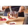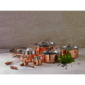 Made with 0.5 mm 18/8 stainless steel interior, 1.3 mm aluminum core, and 0.5 mm copper coating on the outside for an elegant finish. Suitable for all heat sources, including induction. Upgrade your kitchen with this stylish and functional combination. To maintain the shiny copper surface, regular treatment with copper polish is recommended.