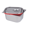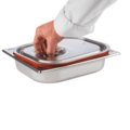Lufttät lock i rostfritt stål från APS. Locket har en röd silikon kant som gör att locket försluter kantinen så det inte kommer in någon luft.