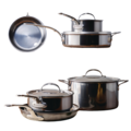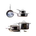The NanoBond Set of 10 pieces from Hestan is the most advanced set on the market, offering outstanding durability, superior cooking performance, and lasting beauty. The set features titanium-based NanoBond™ layers that are bonded directly to stainless steel with an aluminum core for even heat distribution, allowing it to heat up very quickly.