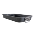 Sleek oven dish 39x29 cm with handles in dark gray color from Cosy & Trendy. The dish is made of metal and is suitable for use in professional kitchens where oven-roasted root vegetables and other delicious items are prepared.