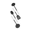 Complete non-stick kitchen utensil set with stainless steel handles from the Profile series by Brabantia. Practical ergonomic design that includes a ladle, serving spoon, spatula, and slotted spoon.
