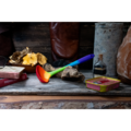 Rainbow-colored silicone soup ladle from Taylors Eye Witness. The ladle features an inner steel part that provides stability to the utensil and an outer part made of LFGB*-graded and certified silicone, free from BPA, lead, phthalates, mercury, PVC, and l