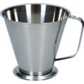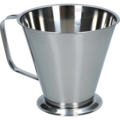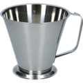 Kitchen measuring cup on a foot from Dalolinden. This stainless steel measuring cup holds 1 liter, has a sturdy handle on the side, and stands on a foot.