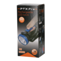Rechargeable handheld lamp with a tiltable lamp head from PTX Pro. Equipped with an emergency light function that automatically turns on during a power outage and also has a flashing warning light.