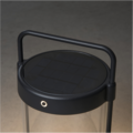Lanterna Crotone 30 cm USB Black from Konstsmide. A stylish solar lantern with a black aluminum frame. The fixture is charged via USB and is dimmable. It is perfect for placing on the floor as decoration on the terrace.