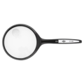 The proven round magnifying glass is now available with three different lens diameters. The large plastic lens Ø 7.4 cm is equipped with an integrated smaller supplementary lens. Magnification 2x and 4x. The frame and handle are black. Ideal for household and hobby use. All small text, such as ingredients on packaging, instructions, package inserts, etc., becomes clear and easy to read again. Color: black. Size: approximately 18.7 x 8.6 x 1.7 cm. Delivered in an attractive self-service box.