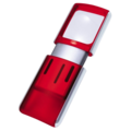 Magnifying glass with LED lighting. Everything becomes so much clearer - maps, recipes, instructions. The extra bright white LED light is activated by pulling up the magnifying glass itself. Batteries. Rectangular lens 34 x 38 mm. 3x magnification with clear LED lighting. Batteries included (CR1220 3V). Article number: 23636.