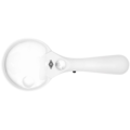 Reading lamp with ergonomic handle, large field of view, and 3 LED lights. The high-quality acrylic lens has a diameter of 9 cm and 2.5x magnification, while the two additional lenses have a diameter of 2 cm and 4.5x and 12x magnification. Ideal for household and hobby use. All small text, such as ingredients on packaging, instructions, package inserts, etc., becomes clearly visible again. The switchable LED lighting illuminates the text and ensures optimal lighting in the dark. Color: white/black. Size: 22.4 x 9.5 x 3.5 cm. Weight including batteries: 138 g. Comes with 3 x 1.5 V AAA micro batteries in an attractive self-service box.
