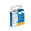 Self-adhesive hole reinforcers made of transparent plastic film, for strengthening or repairing punched paper. Simple on a roll in a cardboard dispenser.