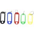 Key tags in different colors made of plastic with a writing surface where you can write important information about the keys that are attached.