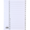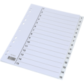 Binder register in white polypropylene plastic ("PP") with black tab printing. Each register set includes a writable title page made of white cardboard printed in black ink.