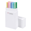 Brush pen with two tips; a fine tip for precise lines and a broad brush tip for applying color to larger areas as well as for brush lettering. Made with water-based colors that can be mixed and used for watercolor painting. Perfect for card design, image stamping, sketches, comic strips, illustrations, etc. The colors are not lightfast. The following colors are included in the set: N60 cool grey 6, N95 cool grey 1, 062 pale yellow, 192 asparagus, 243 mint, 245 sap green, 451 sky blue, 452 process blue, 553 mist blue, 603 periwinkle, 623 purple sage, 673 orchid, 723 pink, 761 carnation, 772 blush, 873 coral, 912 pale cherry, 990 light sand.
