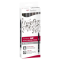 Brush pen with two tips. The fine tip is primarily used for drawing precise lines. The other tip is thicker and flexible like a brush. Available in 107 vibrant colors. Water-based colors can be mixed and used as watercolor paints. Perfect for creating cards, producing designs, sketching, drawing comics, illustrating, and much more. The colors are not lightfast. The following colors are included in the set: 6 different shades of gray. Line width: fine tip approximately 0.8 mm / brush tip up to 10 mm. Packed in a cardboard box.
