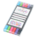 The Zig Calligraphy pen is a double-sided marker. The pens are delivered in a plastic case with 6 different colors.