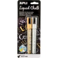 Chalk pen 5.5 mm round tip in gold and silver color in 2-pack. Perfect for shops and cafes to communicate light messages to customers.
