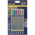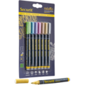 Griffelpenna i blandade metallic färger 1-2 mm från Securit. Enkel att skriva med och passar på till exempel plast, glas, metall och svarta tavlor. Pennan är tålig mot lätt regn, fläckar och blekning.