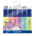 Textsurfer Classic Colors highlighters - Pack of 6 pens in pastel colors - Highlighters with a large ink reservoir for extra long-lasting performance - Suitable for paper, fax, and copies - Ideal for highlighting text and coloring larger areas - Water-based ink - Quick-drying - Twist cap for easy opening - Pen body and cap made of PP ensure long lifespan - Airplane safe - Automatic pressure equalization prevents the pen from leaking on board airplanes - Ultra-soft chisel tip approximately 1.5 mm