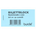 Ticket block 1 - 100 Blue Blocks with numbered tickets 1 - 100. Stapled spine at the edge. Perfect for, among other things, sporting events where raffles are held.