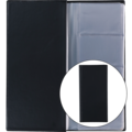 Business card book in glossy black plastic. Fixed pockets for 96 business cards (90x57 mm).