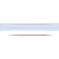 Wooden toothpicks individually packaged in paper. Length: 65 mm. The toothpicks have double ends.