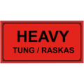 Fluorescent warning labels Heavy/Tung are self-adhesive labels with black print "Heavy / Tung / Raskas." Perfect for, for example, heavy pallets and larger packages.